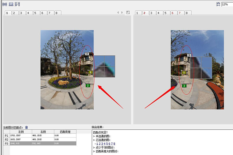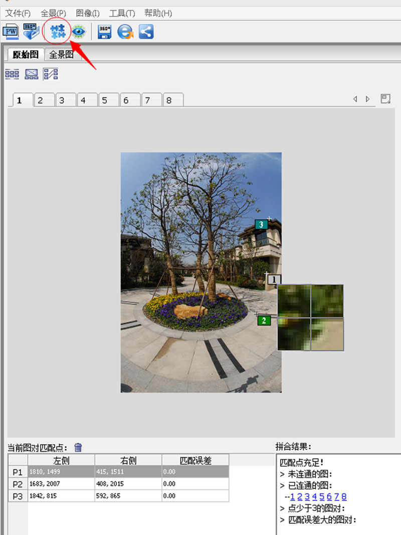 在导入原图点击拼合之后进入匹配点编辑视图模式,选择要添加匹配点的图片(注:匹配点最少添加三个,且匹配点越分散越有利于拼合)。