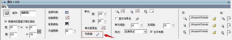 点击缩略图属性中的列表值选项