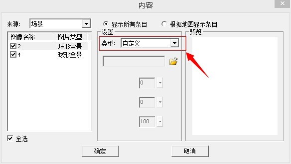 在类型中选择自定义后导入自定义图片,详细请参阅漫游大师帮助文档。