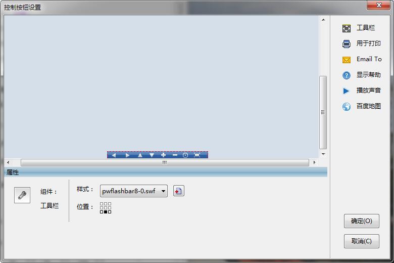 工具栏: 设置控制场景工具栏的样式,可以是默认的也可以是自定义的SWF,不过编写此SWF有一定的规则,必须按照该规则来写。