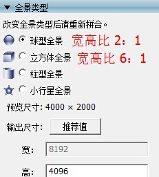 柱形全景:无特定的宽高比,可自行调整限定视野区域。