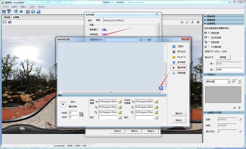下面简单介绍如何在全景图片中添加声音播放按钮。
