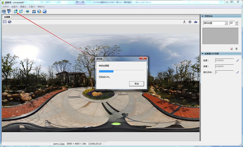 能否将球型全景图片转成立方体全景甚至是立方体6个面的图片呢?答案是肯定的。使用造景师软件可以很容易地将球型全景转成立方体全景,并且可以保存成6个面的图片。以下简单介绍具体的实现方法。