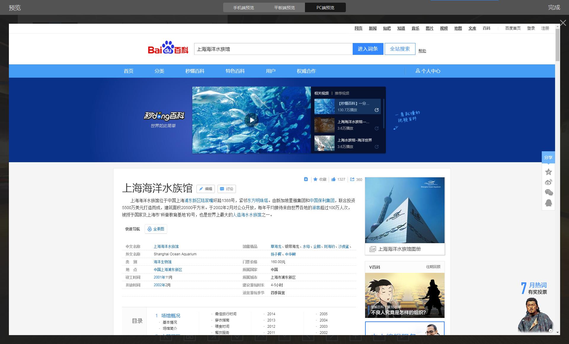如图二所示的例子,添加了一个水族馆百科的内嵌页面用于展示水族馆的基本信息。预览的效果如图二所示: