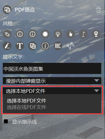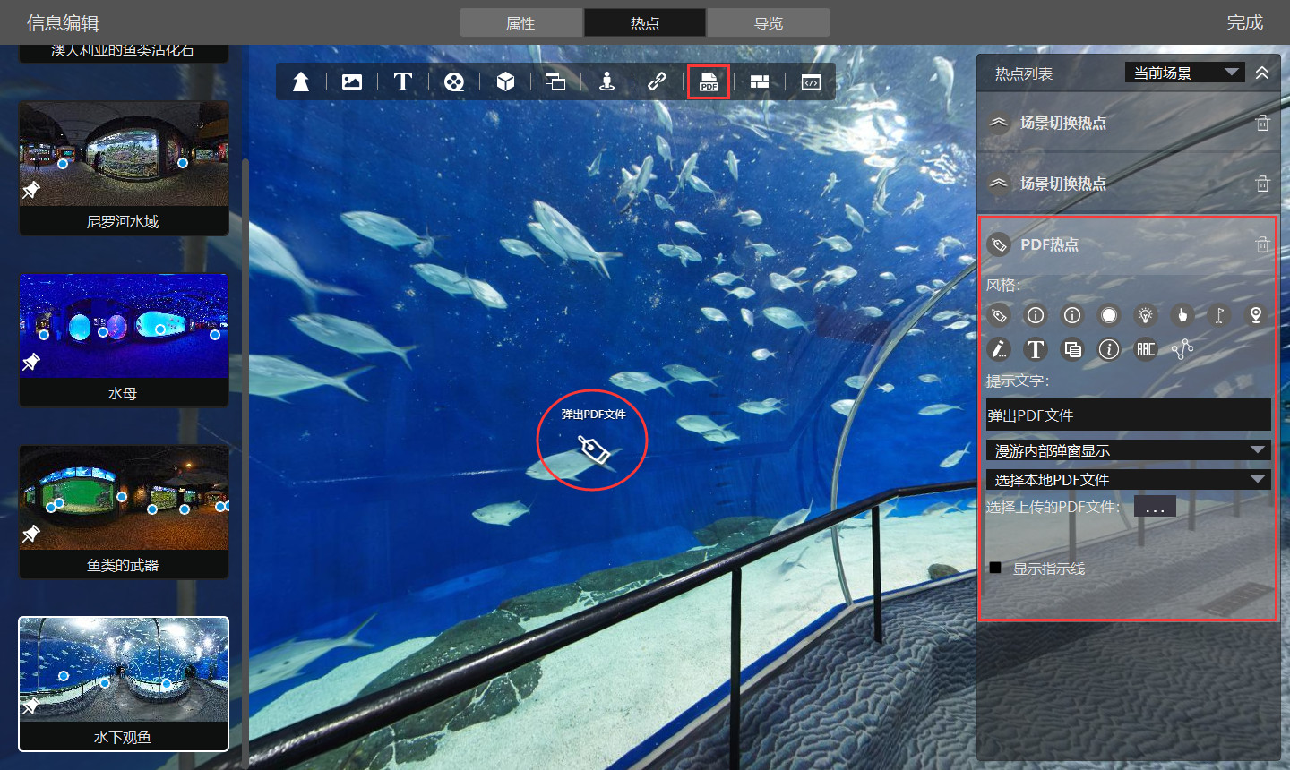 第一步,在热点编辑界面中单击PDF热点图标以添加PDF热点。如下图: