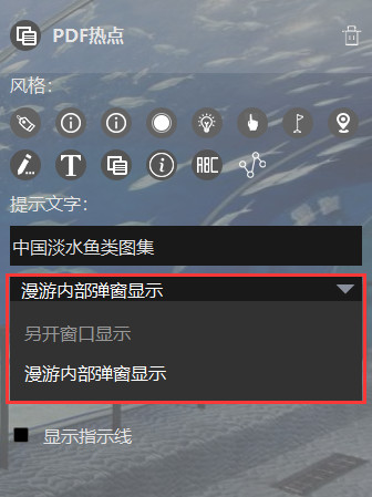 其次,用户可以在虚拟游览中选择显示效果。 它可以显示为弹出窗口,也可以显示在新窗口中。