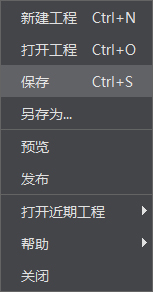 工程制作完成后可以点击菜单栏中的保存(如图七)或者工程编辑界面直接使用快捷键Ctrl+S进行工程的保存。