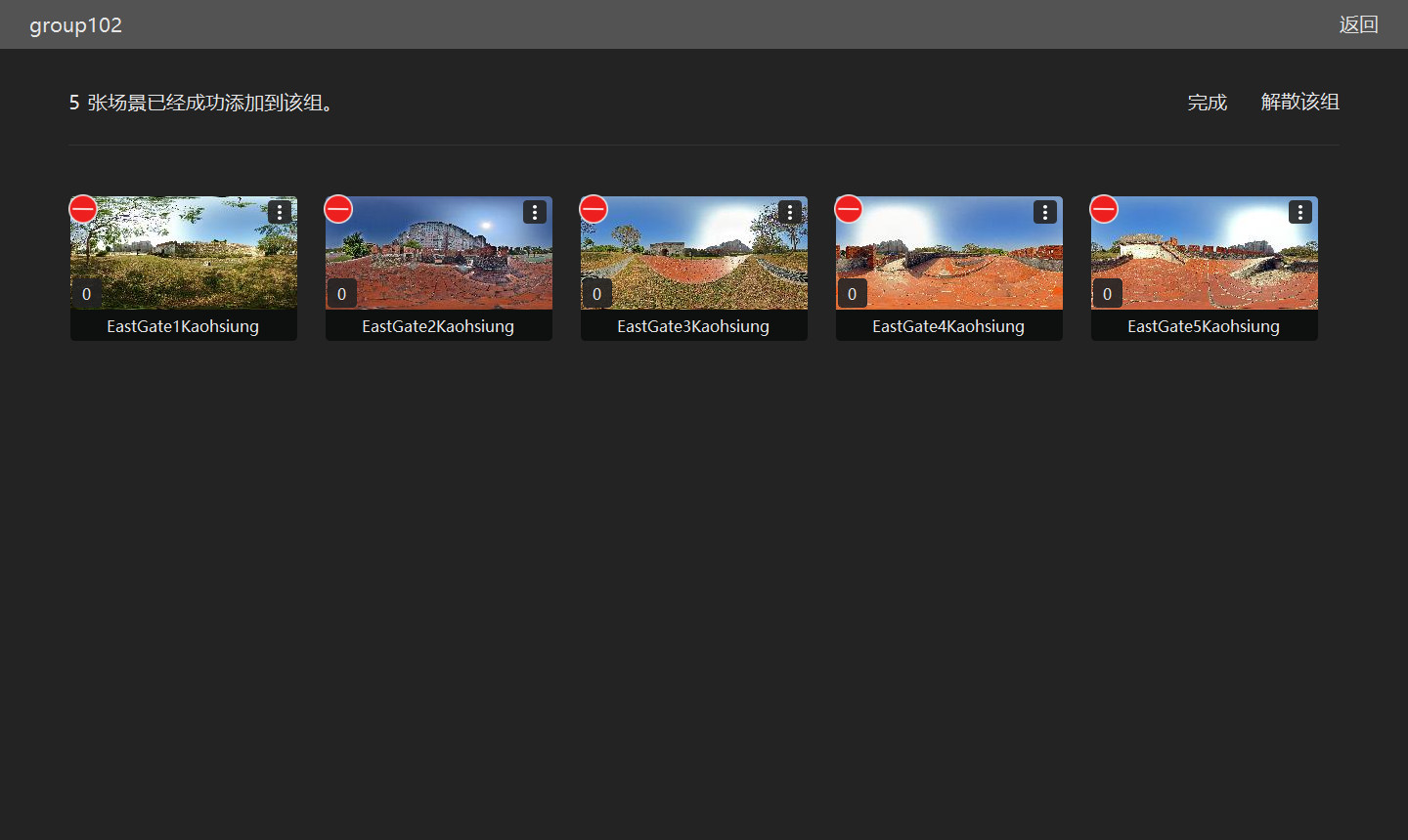 点击右上角的编辑可以批量删除不需要的场景,删除后点击完成,如下图所示。如不需要该分组,可以点击右上角的解散该组解除分组,所有的场景将按初始导入软件的位置进行排序。