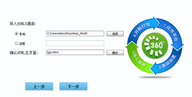 选择本地或者服务器上的漫游路径,确定HTML主页面为打开全景漫游的入口页面,并保持.html为后缀的文件。