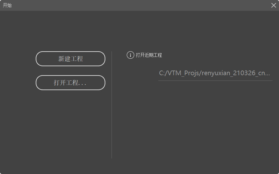 点击主菜单“打开工程...”或者开始窗口的按钮“打开工程...”,将会弹出文件对话框,选择工程文件(.vtm),然后确定,就可以打开工程。