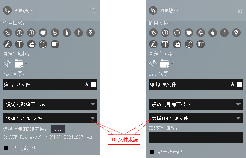 PDF热点可以使用“图标和提示文字样式”以及“多边形样式”。