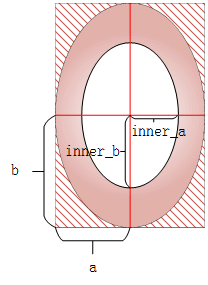 在视频区域创建两个同心的椭圆。外层椭圆内切于视频的矩形区域,其长短轴分别为a、b。内层椭圆的轴为inner_a和inner_b,且inner_a