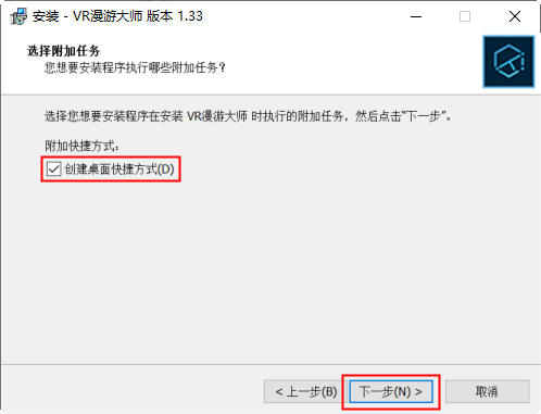 设置桌面快捷方式,勾选即为在桌面添加软件的快捷方式图标,继续下一步。