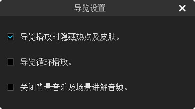 选中“导览播放时隐藏热点及皮肤”,在播放案例时,播放器不会展示热点和皮肤。